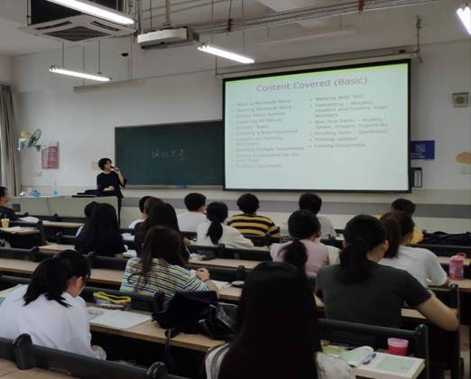 在课堂教学中,Hoo Meei Hao博士给学生上了一堂精彩的计算机基础课程,介绍了Office 2018应用,并结合word文档的使用技巧,给学生讲解了专业简历的制作过程,受到了学生的热烈欢迎和一致好评。