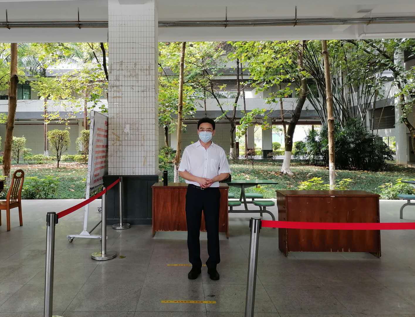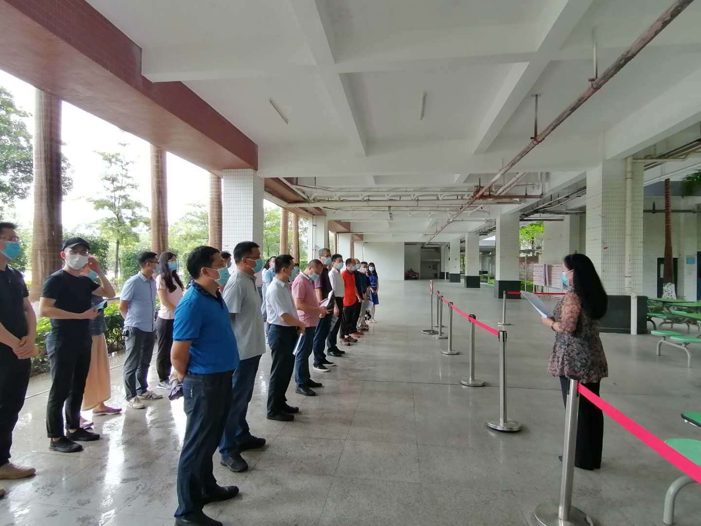 在世界杯官网党总支书记朱小焱宣读完演练流程安排后,世界杯官网辅导员冯晓骏、财经与新传媒学院辅导员钟子斌、工商管理学院辅导员朱旖玲、工商管理学院党总支副书记朱培松、世界杯官网党总支副书记丘志君先后主持了学生晨午晚检、饭堂就餐、毕业生领取毕业证书、学生教室上课发现学生发热处置、卫生所发热病人预检分诊及疑似病人转诊等五个场景的演练讲解,相关工作人员严格按照疫情防控应急演练流程向到场人员作了精彩演练。