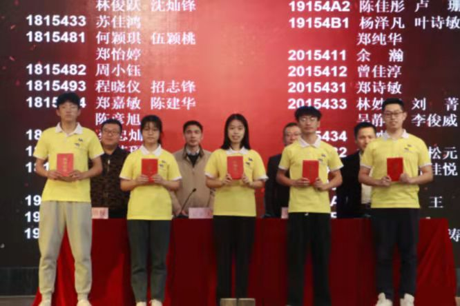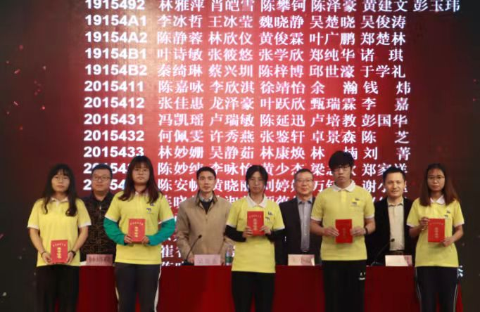 接着,主席台上的领导、老师为优良学风班集体、蓝桥杯、大学生程序设计大赛、挑战杯、国家奖学金、国家励志奖学金、百佳学习标兵奖学金、百佳自立自强奖学金、优秀三好学生、三好学生、考取英语六级证书以及优秀指导老师等先进集体和个人代表进行颁奖。