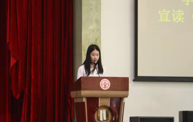 随后,学生代表秦绮琳宣读了《考风考纪倡议书》,她倡议同学们认真复习、诚信考试、严于自律,努力交出一份满意答卷。
