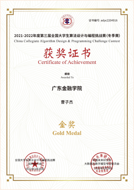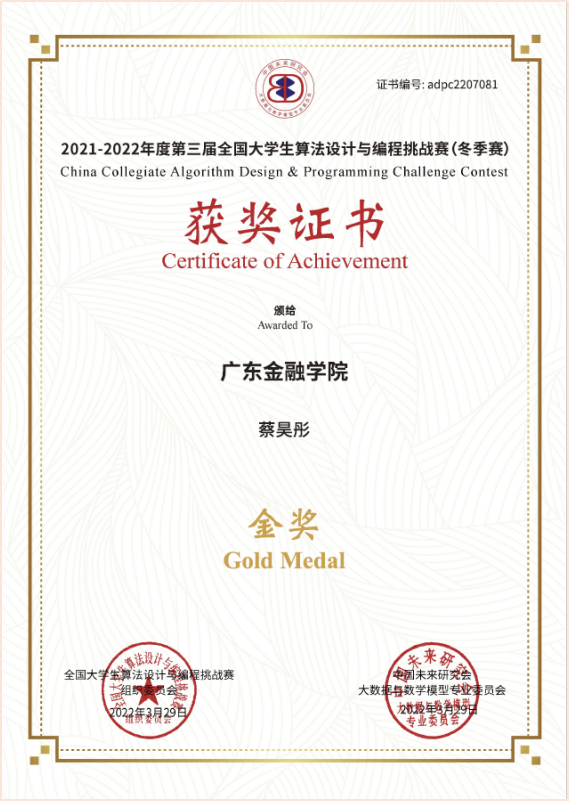 3月27日,2021-2022年度第三届全国大学生算法设计与编程挑战赛(冬季赛)在线上进行,来自北京大学、清华大学、上海交通大学、复旦大学等761所高校共6220名选手参加了竞赛,世界杯官网世界杯官网郭艺辉博士、温展杰老师率队参加了比赛,获得了“三金八银一铜”的优异成绩。