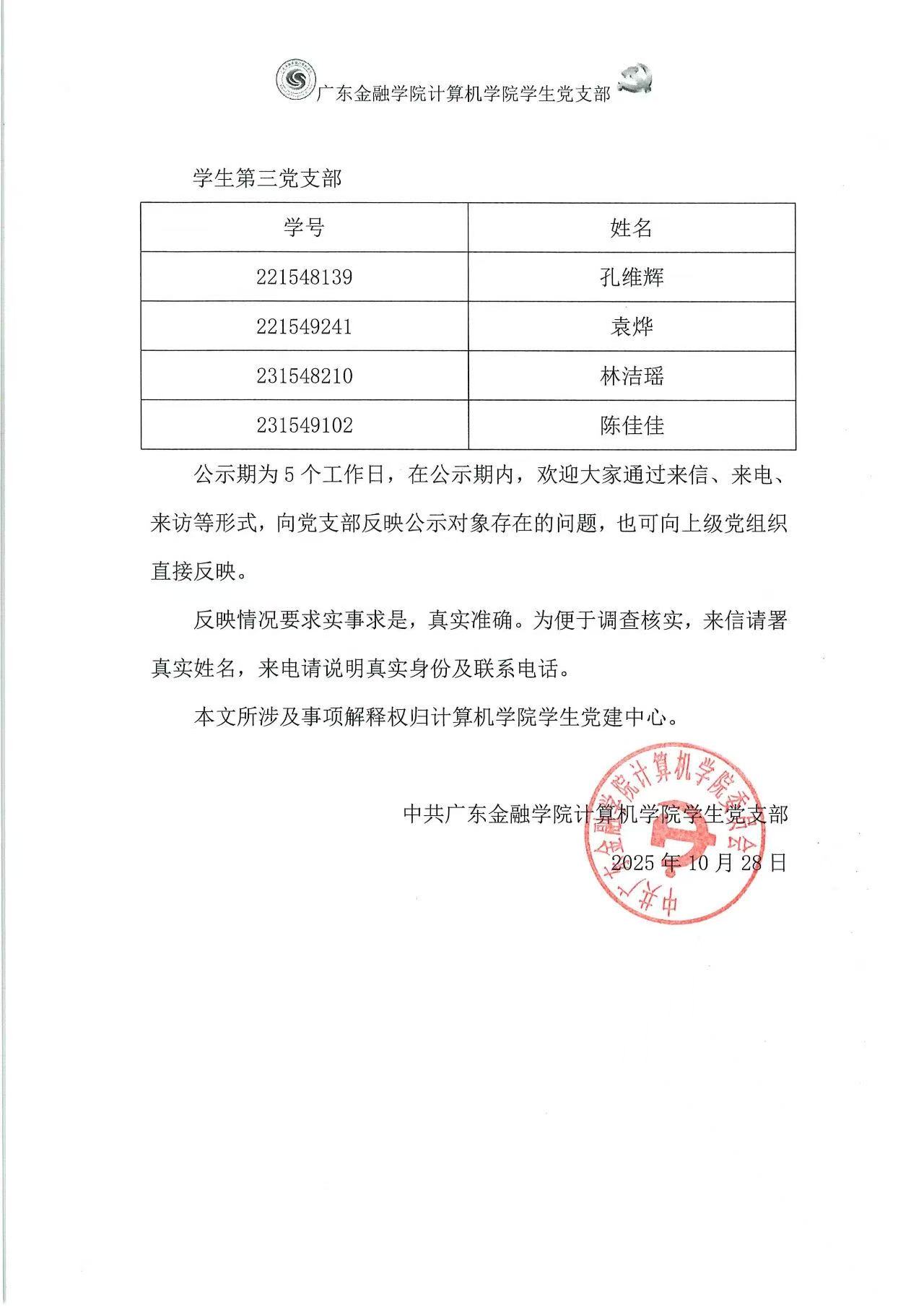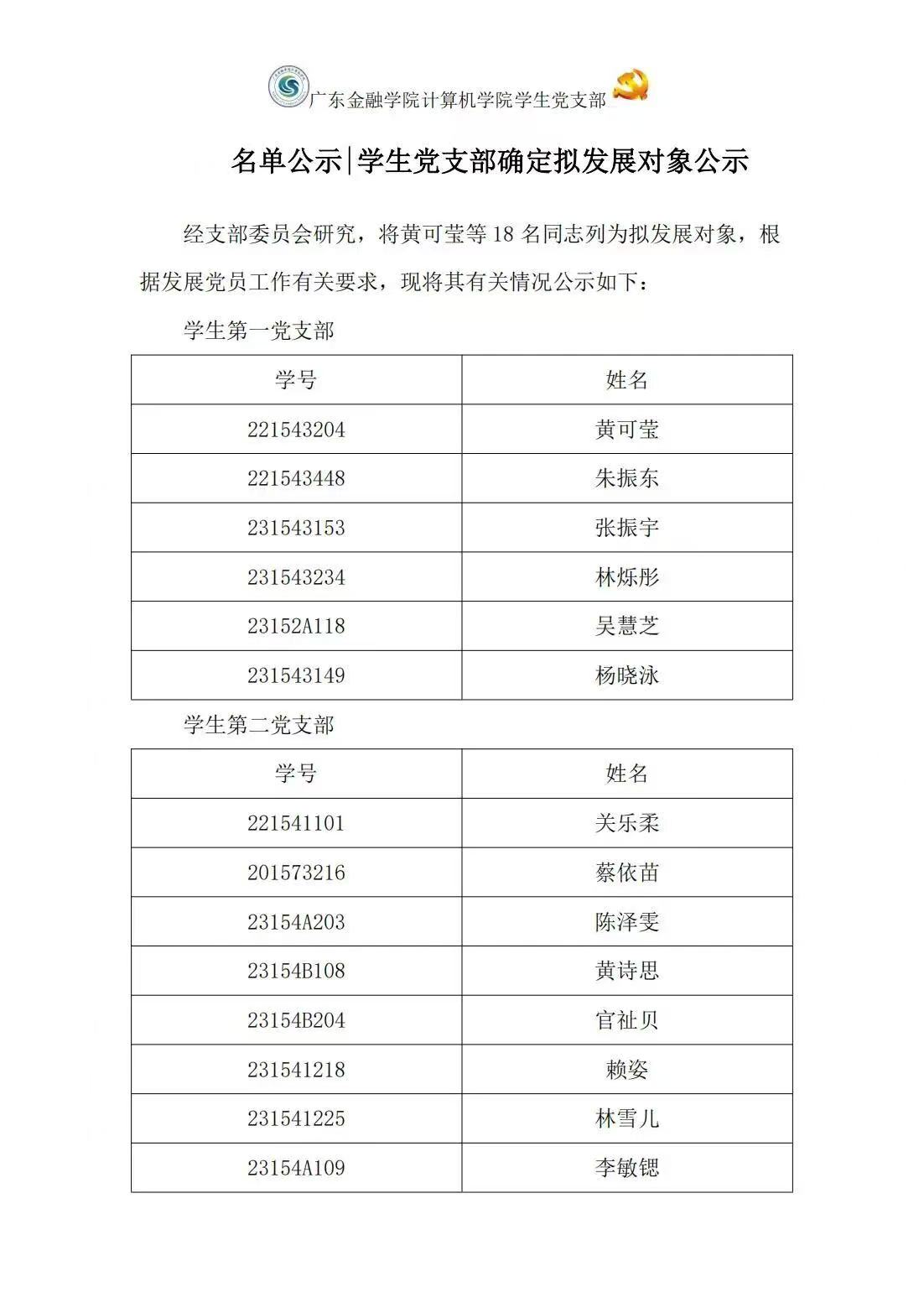 公示 | 世界杯官网世界杯官网学生党支部确定拟发展对象公示