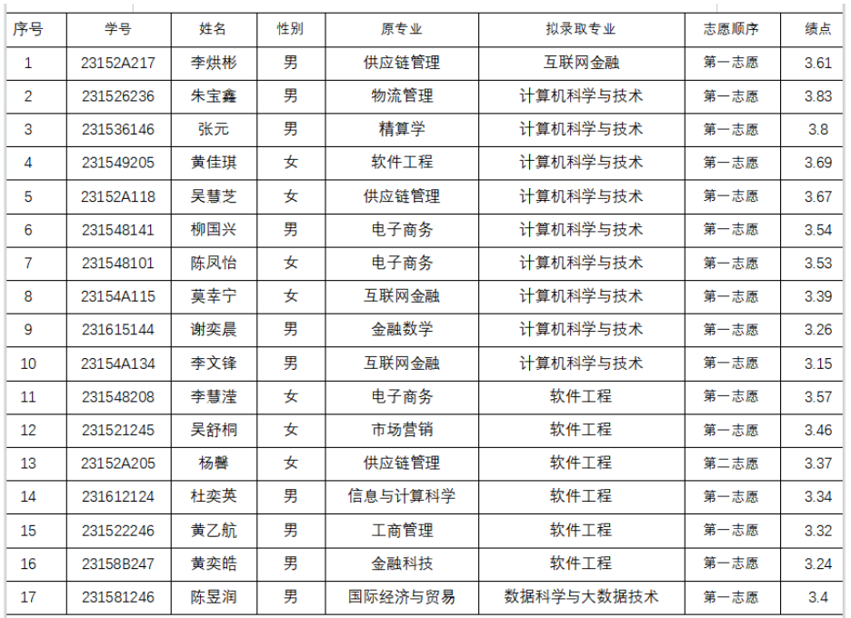 根据《世界杯官网学生管理规定》、《世界杯官网全日制本科学生转专业管理办法》、《世界杯官网2023级全日制本科生转专业实施方案》和《世界杯官网2023级全日制普通本科生转专业实施方案》的规定,经学生本人申请,转出学院初审,世界杯官网转专业工作小组对申报世界杯官网的转专业学生进行了资格审核和考核筛选,现将世界杯官网审核情况予以公示。