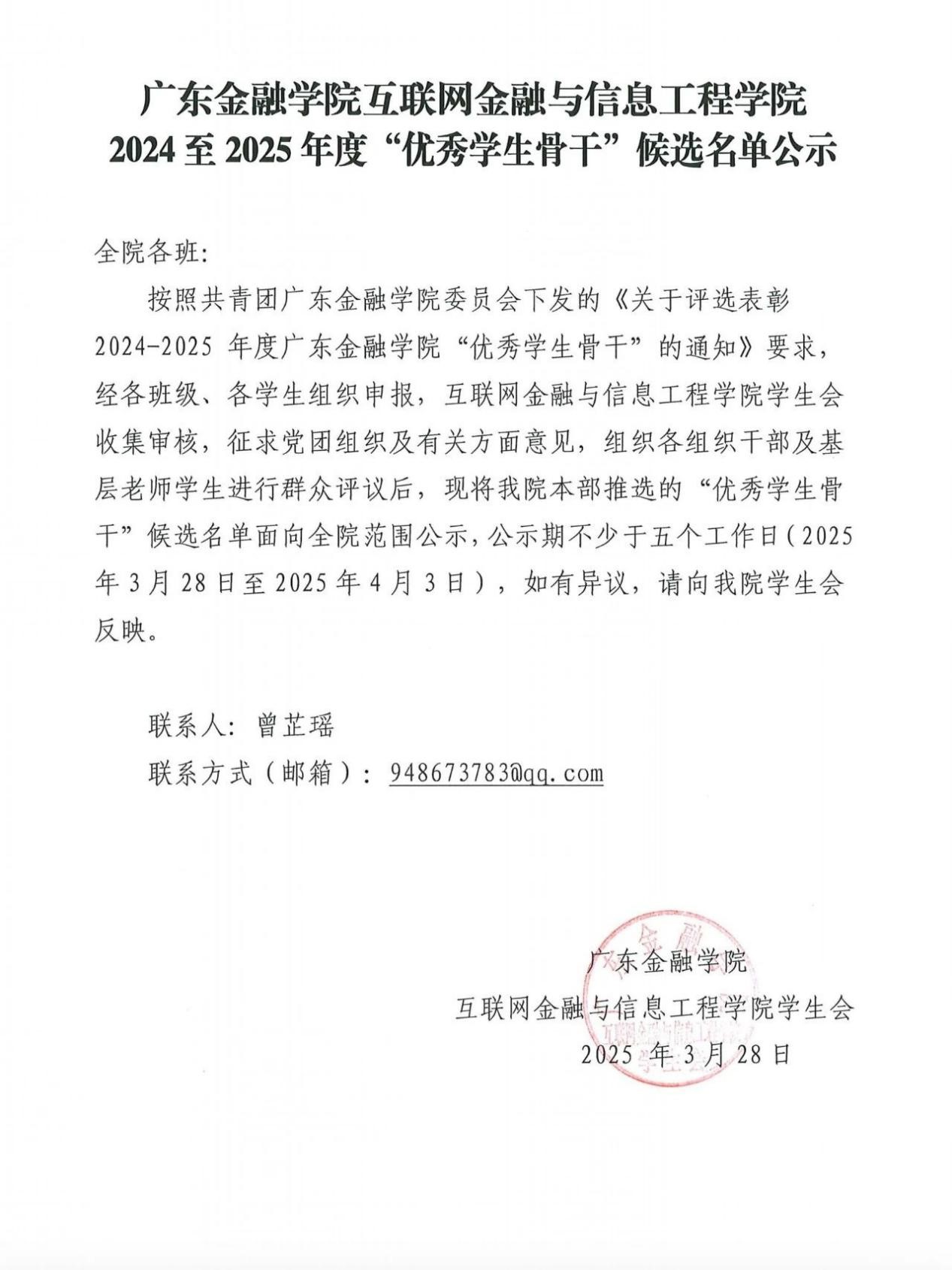 公示 | 世界杯官网2024至2025年度“优秀学生骨干”候选名单公示