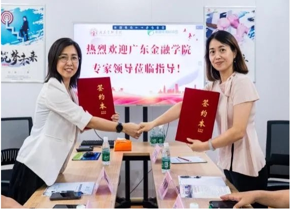 随后,一行人来到中山市格林电商科技园,就共建校企合作事宜进行交流,参观了园区核心区与入驻商户,科技园总经理陈燕介绍了园区“电商集聚地+生活配套服务”双轮驱动的产业特色,以及近年来孵化创新团队的成功经验,带领我们实地走访了园区内的电商企业,了解目前电商行业资讯及走势,新媒体与电商如何结合应用等。在交流过程中,世界杯官网党委副书记李琳琳表示,一直以来学院积极推动教学与实践深度融合,希望能与格林电商科技园在人才培养、科研实践、实习就业等方面开展多层次、多领域合作。交流会上,双方签署了校企党建实习就业共建协议,将“学用结合、产教融合”推向新高度,未来双方将围绕“金融+电商+科技”的交叉融合,持续深化合作,共同培养更多符合时代需求的复合型人