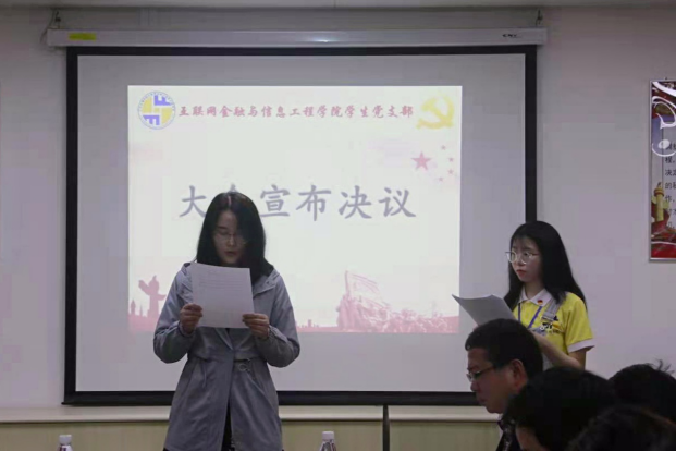 会议在庄严的《国歌》声中拉开帷幕,首先,主持人汇报大会人员情况、介绍大会出席人员并宣布大会正式开始。接着,8名发展对象依次向党组织作汇报自己在思想、学习、工作、生活等各方面的综合表现,并接受支部大会审议。随后,各入党介绍人依次向支部大会介绍发展对象各方面的表现,向支部大会推荐发展他们为中共预备党员。最终经无记名投票,全票通过一致同意吸收刘峰铭等共8名同志为中共预备党员。
