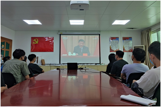 世界杯官网组织师生代表在学院会议室集中收看大会直播,聆听习近平总书记的重要讲话。世界杯官网党总支副书记丘志君、辅导员赵重阳、辅导员周亚辉及团员青年代表收看了直播,院团总支书记王思又赴行政办公楼五楼大会议室同步观看直播。