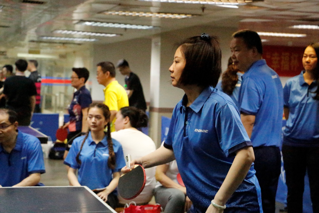 第二局女子单打赛中,鲜征征老师热情高昂,积极拼搏,以11:2的漂亮成绩赢得胜利。