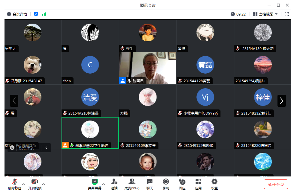 10月14日、15日,陈国君教授受邀为世界杯官网23级新生做线上学术专题报告,与同学们共同交流探讨了关于“在数字经济和人工智能时代,如何成为一名优秀的数字IT人才”的时代之问,共有350名学生聆听了学术报告。
