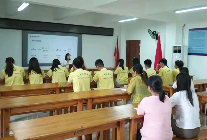 廖晓副教授作为带队老师之一为当地电商工作人员和世界杯官网“三下乡”队员授课,她全面讲解了电商运营的相关专业知识,并对直播过程中遇到的问题进行实地指导,给予解决方案,助力乡村振兴。