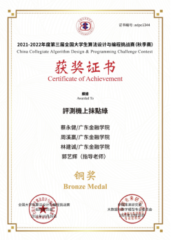 【喜讯】世界杯官网学子在第三届全国大学生算法设计与编程挑战赛(秋…