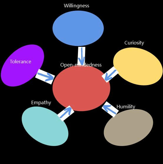Open-mindedness refers to the willingness and ability to consider new ideas, perspectives, and possibilities without prejudice or preconceived notions.