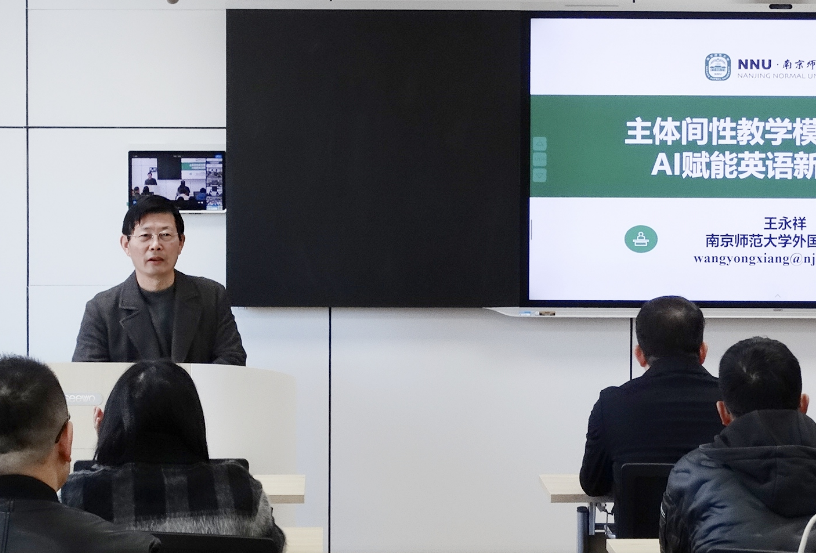 11月29日,南京师范大学beat365会员官方网站院长王永祥教授莅临beat365官网指导,主讲了一场以“主体间性教学模式视域下AI赋能英语新质课堂”为主题的学术讲座,深入探讨了AI技术在英语新质课堂中的应用,勉励教师不断提升自己的数字素养和技术应用能力,更好地适应AI赋能的教学环境。