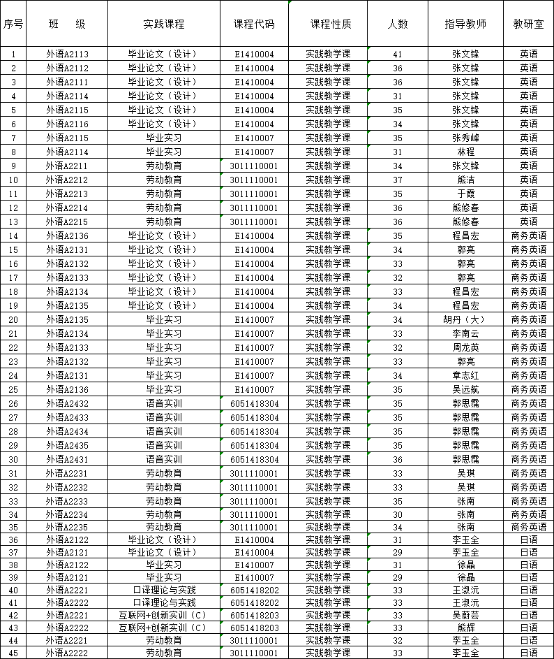 2024-2025学年第二学期实习实训计划统计表