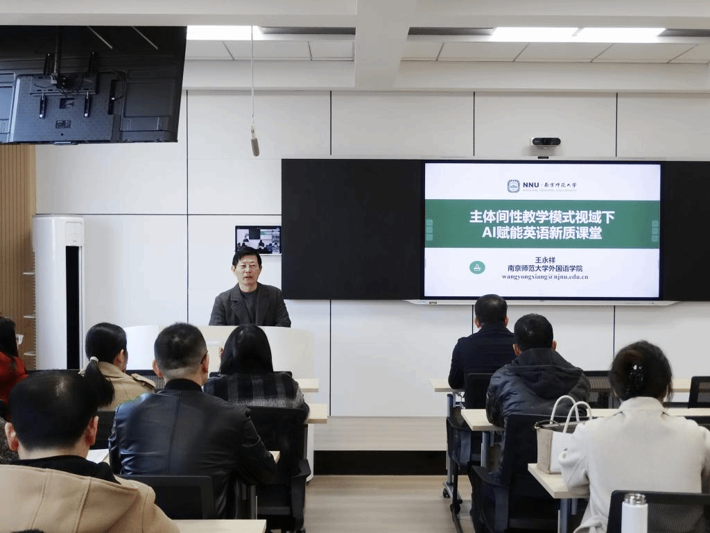 近日,beat365官网邀请南京师范大学beat365会员官方网站院长王永祥教授莅临beat365官网指导,并进行了一场以“主体间性教学模式视域下AI赋能英语新质课堂”为主题的学术讲座。全院60多名老师参加了讲座,现场气氛热烈,学术氛围浓厚。