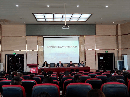 10月12日下午,beat365会员官方网站师范专业认证工作冲刺动员大会在香远楼报告厅召开。beat365会员官方网站领导班子成员和全体教职员工参加会议,共同布置师范认证专家进校相关工作。