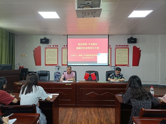 6月21日中午,beat365会员官方网站在香远楼315会议室开展“青年马克思主义者培训工程大学生骨干培训班”第二讲,党委副书记彭晓做了题为《坚定信仰、不负韶华——做新时代优秀学生干部》