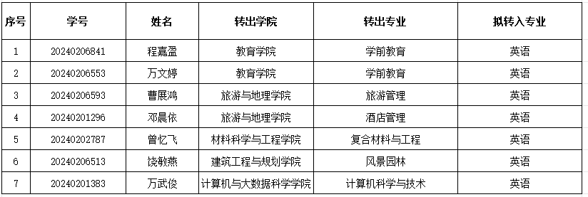 现将beat365官网拟接收2024级转专业学生名单公示如下: