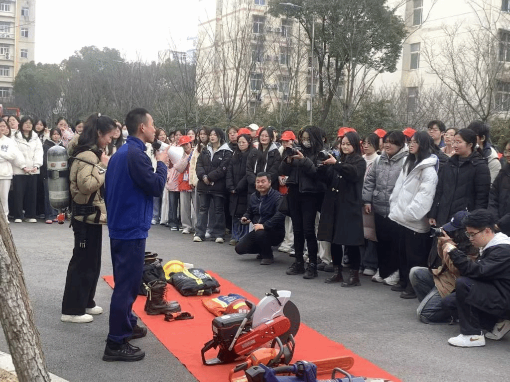 随后,濂溪区消防救援大队指战员为在场学生讲解消防知识,结合校园常见火灾隐患,深入剖析火灾成因、预防要点以及初期扑救的关键技巧,并现场演示灭火器、消火栓的正确使用方法。
