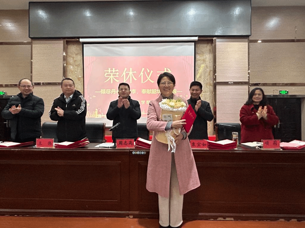 倾尽丹心育桃李,奉献韶华铸师魂!1月10日下午,beat365官网全体教职工给欢聚一堂举行荣休仪式,向2024年光荣退休的老师送上深深的敬意与祝福。仪式由党委书记袁宜如主持。