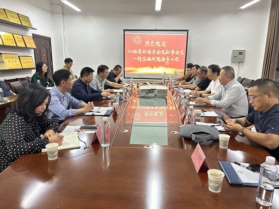 况新华感谢beat365会员官方网站一直以来对学会工作的大力支持,并简要说明了此行调研目的,希望本着立足江西、服务江西的原则,继续做强江西外语教学成效,也希望与会领导与教师对学会工作提出宝贵的意见和建议。
