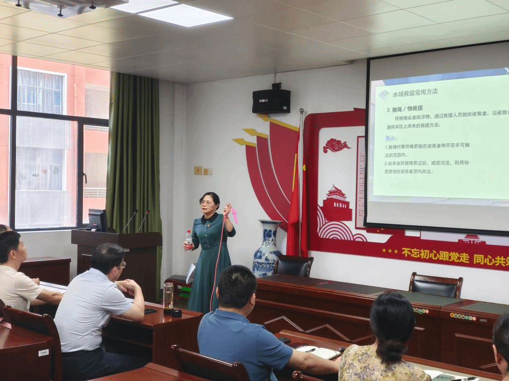 本次培训包括堤防防汛抢险技术、危险水域识别及救援与自救两个板块,重点学习了城市内涝常见危险、河流(激流)危险区域、水域救援常用方法和人员自救常用方法等内容。为增强实效性,项莉还为大家进行了现场演示,使复杂的防汛救灾知识更加直观、生动。整个培训结合当前防汛工作实际,内容丰富、通俗易懂,具有很强的指导性和操作性。