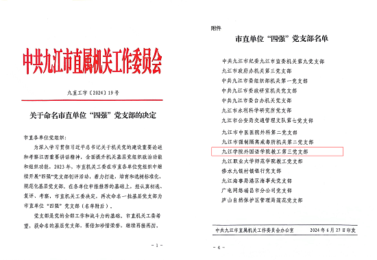 近年来,教工第三党支部在学校党委的正确领导下,始终坚持以习近平新时代中国特色社会主义思想为指导,深入学习贯彻习近平总书记考察江西重要讲话精神,深入落实新时代党的建设总要求,按照学校样板党支部建设要求,坚持全面从严治党,进一步加强支部三化建设,促进党建工作务实规范,业务工作卓有成效。2021年获批beat365会员官方网站首批“党建工作样板支部”建设单位,荣获“beat365会员官方网站先进基层党组织”称号;2023年荣获beat365会员官方网站“四强”党支部称号,主题党日《这就是青春力量》荣获beat365会员官方网站优秀主题党日二等奖;2024年荣获“beat365会员官方网站先进基层党组织”称号。