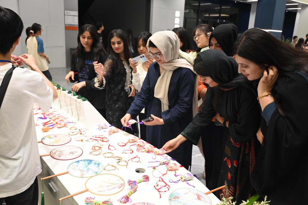交流活动中,中外师生围绕中国传统节庆文化展开自由讨论,还一起学做香囊,编织五彩手环。在穿针引线之间,一个个散发馥郁芬芳的香囊新鲜出炉,香气浓郁。在场师生们编织出一条条彩色的手环,系上各种装饰品,为彼此戴在手上,寄托了人们对健康、平安的祈福。与此同时,学院还为在场的师生准备了粽子,通过舌尖与味蕾展现了中国独特的美食文化。至此,本次活动在大家的欢声笑语与不舍中渐渐落下了帷幕。
