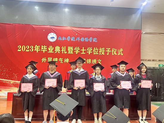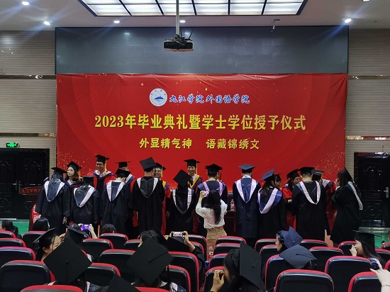 毕业生代表、校学生会执行主席、日语A1922班黄毓同学表示,回望外院岁月,有感动,有温暖,有力量。即将踏上新的征程,将不惧风雨,勇往直前,与时代同行,唱响青春之歌,努力成为有志气、有骨气、有底气的新时代青年。