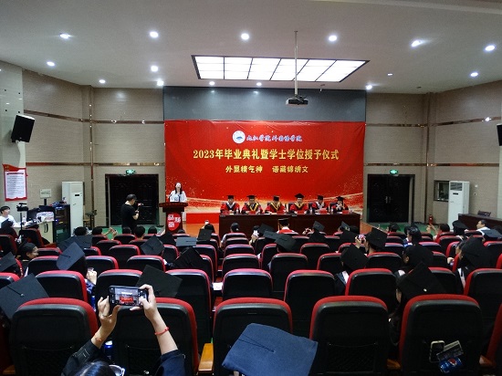 党委副书记彭晓宣读优秀毕业生名单、校友联络员聘任文件,副院长王伟同志宣读2023届毕业生名单、授予学士学位学生名单,副院长项莉同志宣读2023届研究生录取名单。