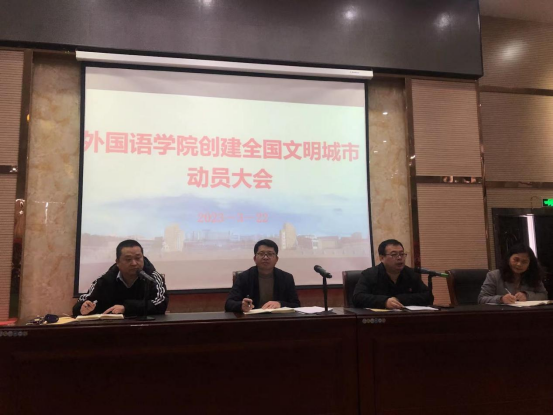 3月22日下午,beat365官网在香远楼报告厅召开创建全国文明城市动员大会。院领导及全体教职工参加了会议,党委书记闫来英作了动员讲话,会议由副院长王伟主持。