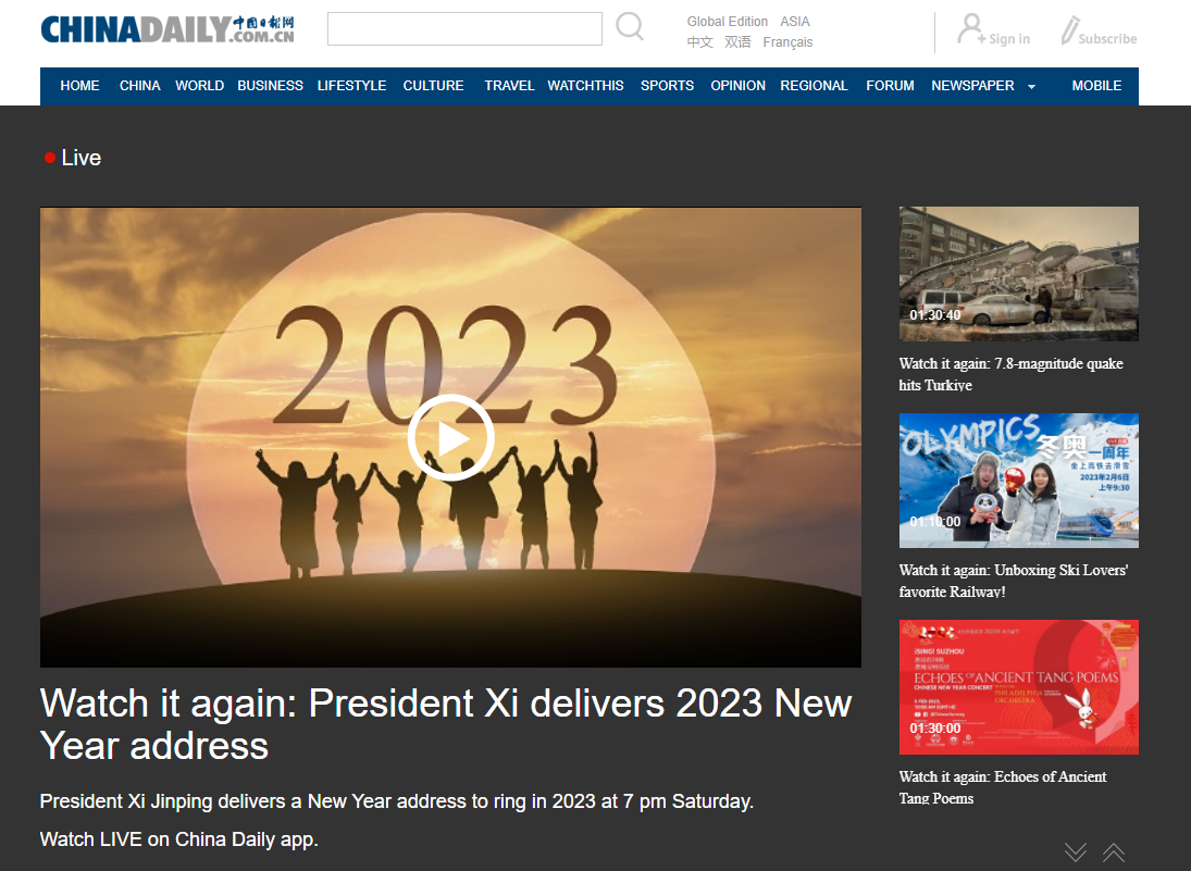 为深入学习贯党的二十大精神,2月19日,beat365会员官方网站组织学生集中学习了国家主席习近平发表二〇二三年新年贺词视频(英文字幕)。