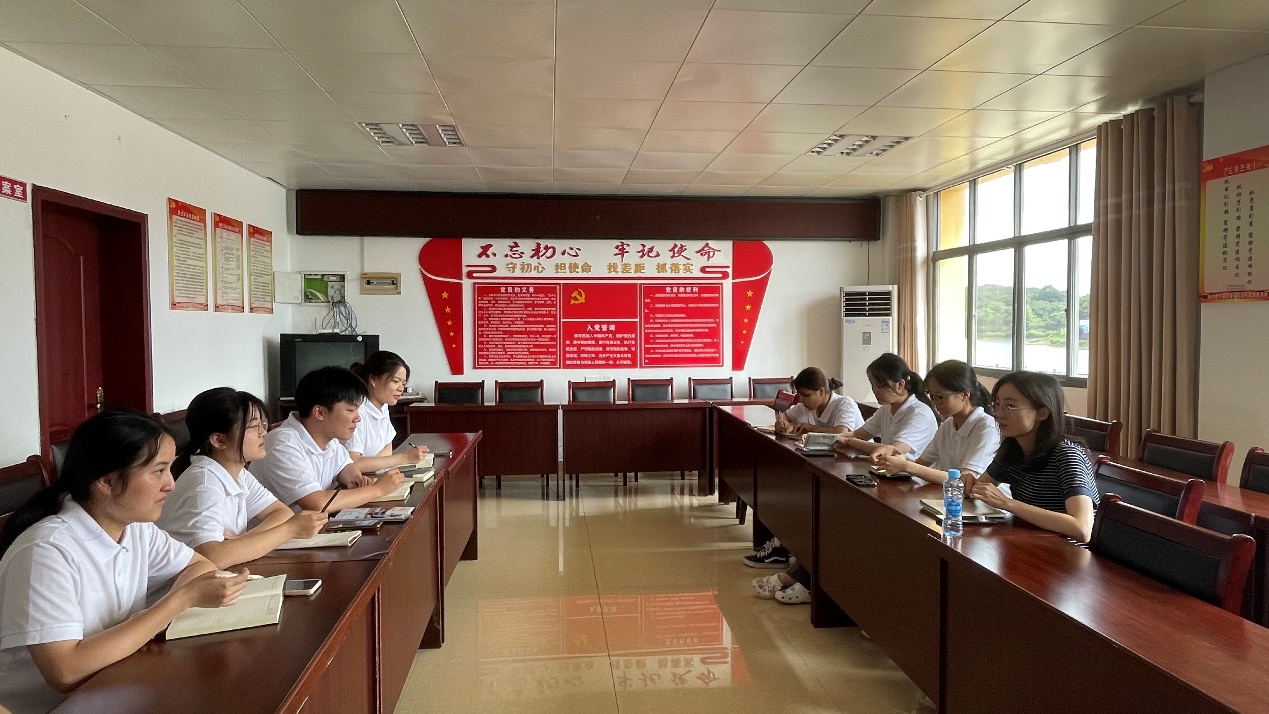 活动过程中,社会实践服务队的同学们与北大硕士毕业生廖梦茹结识,半年前的她作为一名选调生来到东山村。谨记习近平总书记感召的她,褪去光环、不忘初心,心怀家国情怀,来到基层做一株“墩墩苗”,任职东山村党支部书记助理,深深地扎根于“庐山西海第一村”这片山水,融入基层群众,真切地感受群众所思所想,做好群众所盼所需。