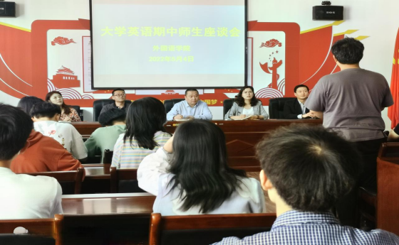 5月4日下午,beat365官网四个大学英语教研室在香远楼315召开了期中教学质量检查师生座谈会。副院长王伟、各大学英语教研室主任以及各学院的学生代表参加了座谈会。会议由大外一教研室主任邹晓燕副教授主持。