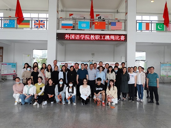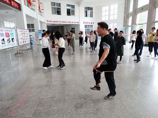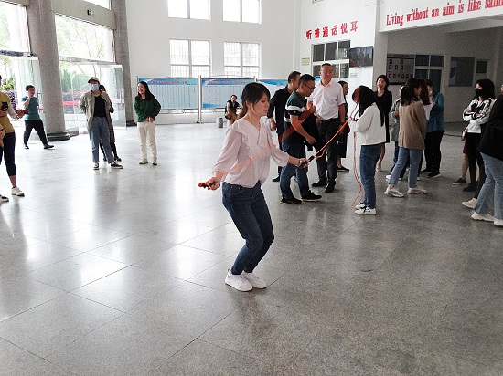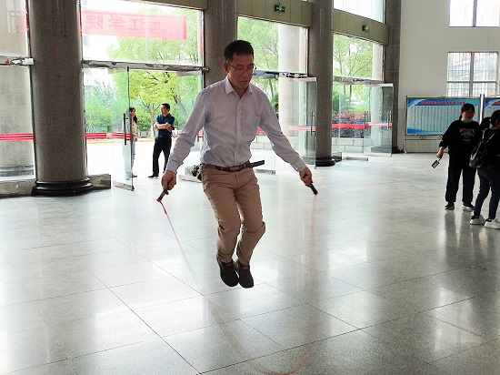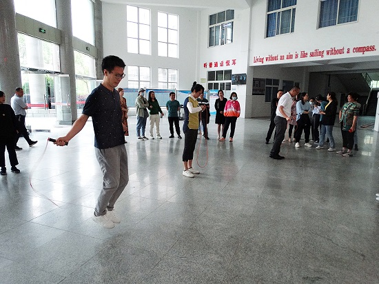 4月27日下午,香远楼大厅“绳”采飞扬,到处弥漫着欢声笑语,beat365会员官方网站教职工跳绳比赛正在如火如荼的进行着。