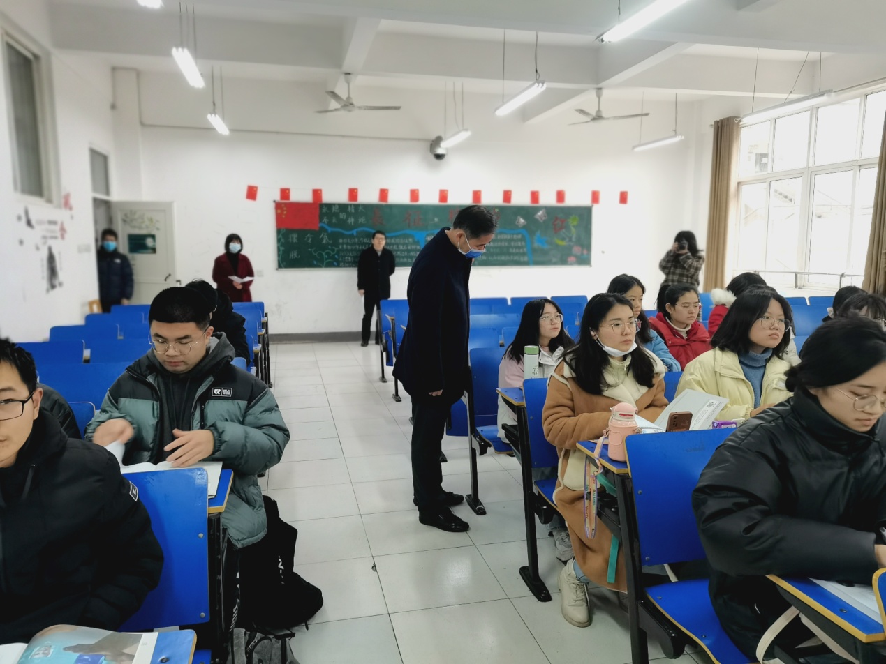 赵伟走访了beat365会员官方网站各教室,亲切问候学生们的寒假生活,仔细查看教师的授课情况和课堂教学要点,关注学生的学习状态,全面把握教情和学情。他对学生们的课堂表现、上课纪律予以表扬,充分肯定了授课老师的精彩讲授。他鼓励同学们好好珍惜大学时光,努力成长成才,最后要求beat365会员官方网站全体教职工增强责任意识,提高工作主动性,为学生学习和生活保驾护航。