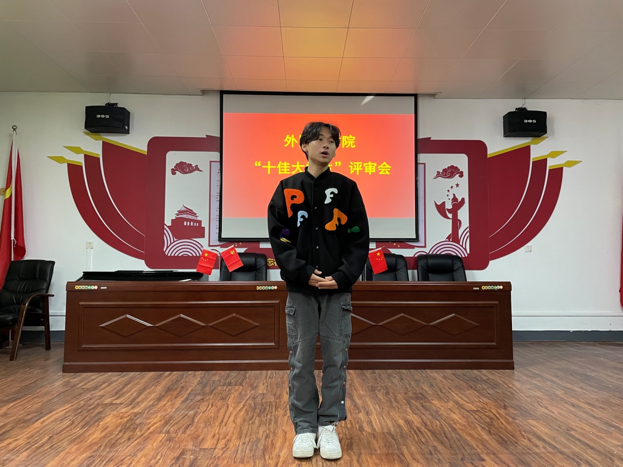 评选会上,姚思吟、赖小丽等同学作为“十佳大学生”候选人进行了自我介绍。程燕祺同学讲述了自己在班担任学习委员等职务,在校期间参与各项活动获得的体会与经验,她表示,未来自己将会还会继续努力。赖小丽同学通过将自己的性格爱好与自身未来的发展相结合讲述大学期间获得的成绩,表示未来会不断提高自己和完善自己,更好地投入到服务学院师生的工作中去。姚思吟同学通过PPT的形式来讲述自己在校期间成为一名中共预备党员的心路历程和心得体会,她表示自己定会常怀感恩之心,不忘来时路,走好脚下路,坚定未来路,向优秀前进。评选现场气氛热烈,不时响起阵阵掌声。