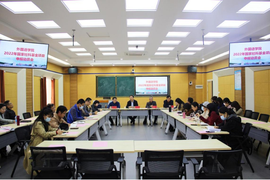 本次会议旨在动员、引导教师积极有效地参与项目申报,进一步提升教师科研能力和科研意识,切实提高外语学院国家社会科学基金项目申报质量,力争2022年度国家社会科学基金项目申报工作取得新的突破。