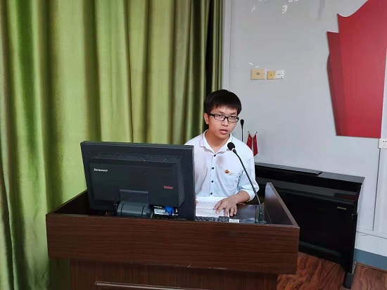 会议的第三项内容是党史学习教育阶段性交流发言。郭亮等4位同志结合自身实际,与全体党员分享了自己的心得体会。其中,外语A1742班的冯清林同学,代表学生党员分享了他发表在“学习强国”上面的文章《曾祖父,你改变了我》,深深地打动了在座的每一位同志。