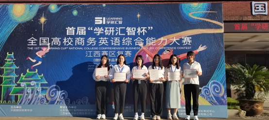 自组队以来,六位同学在李晓惠和梅君老师的指导下克服困难,积极备赛,最终荣获江西赛区三等奖,袁燕同学凭借出色的现场应变能力和完美的口语展示从100多名参赛选手中脱颖而出,获得最佳思辨奖。