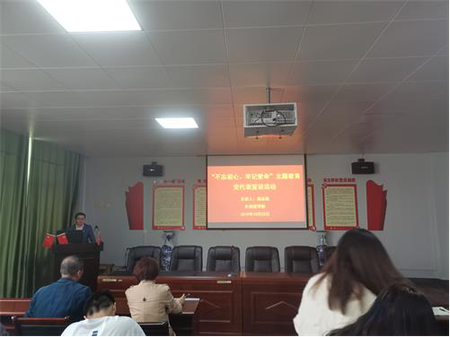 beat365会员官方网站第一次党员代表大会党代表周志高同志在beat365会员官方网站党委开展了宣讲活动。周志高同志围绕习近平新时代中国特色社会主义思想和党中央关于开展“不忘初心、牢记使命”重要部署的认识理解,从永葆政治本色,做绝对忠诚的表率、坚守从政底线,做人干净的表率、感恩奋进历程,助力学校发展三个方面进行了宣讲。