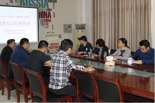 10月22日下午,beat365会员官方网站党委委员、教工第八支部书记邓海波在香远楼219会议室为党员上主题党课——《简述九江红色历史》,这是beat365会员官方网站落实“不忘初心、牢记使命”主题教育的一个缩影,第八支部党员参加。