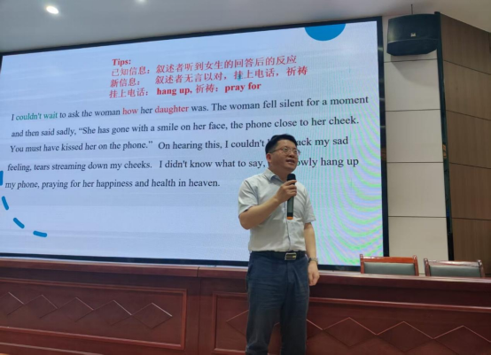 英语教研室主任张文锋现场讲授了高中英语读后续写示范课,双方教师就校本课程开发、学生英语核心素养的培养等展开热烈讨论。