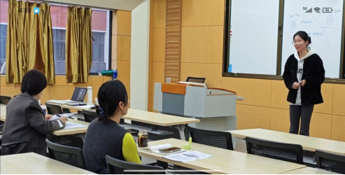 按照田赛真实赛程,车校长提前两小时给刘馥珍同学布置指定的备赛内容,按照田赛要求,实行无网络环境即时备赛,包括制作40分钟的教学设计和PPT课件,从中摘取一个教学片段,进行10分钟的片段教学。正式讲课前,又布置一个3分钟的即席讲演,准备5分钟。在全部环节备好之后,刘馥珍开始讲课和即席讲演。听取刘馥珍的讲演和教课后,车蓓蓓给刘馥珍同学进行了深入的点评,提出了许多宝贵的指导意见。