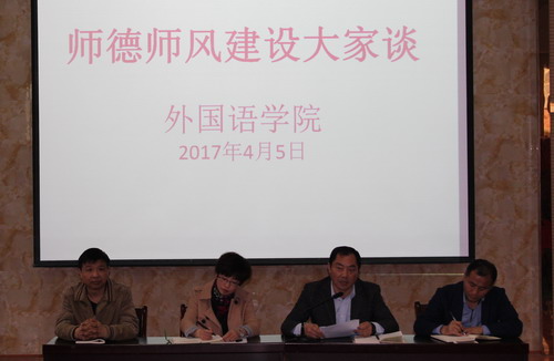 为切实加强教师职业道德建设和教师队伍管理,进一步提高师德师风建设水平,4月5日下午,beat365会员官方网站在香远楼三楼学术报告厅,开展师德师风建设大家谈活动,全院教师参加,活动由杨杰书记主持。