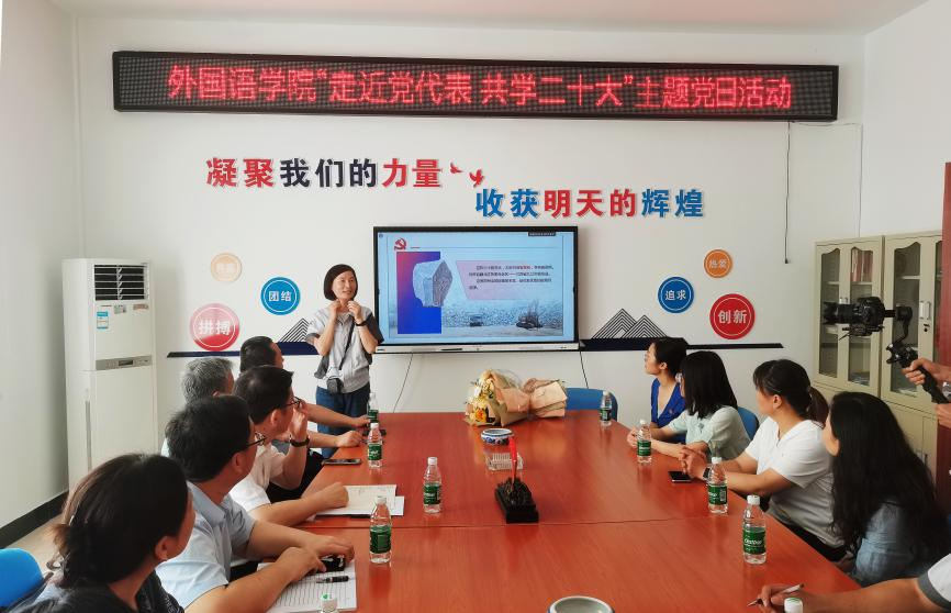 随后,赵小梅为大家上了一堂学习贯彻习近平新时代中国特色社会主义思想主题教育专题党课,生动描绘了党的二十大盛况,分享了参加党的二十大的思考感悟,以及她在企业创办帮扶工段等党建项目做法与成效。她勉励外院学生扎根中国大地,传承红色基因,趁年轻、勤攀登、多奋斗,在中国式现代化的赛道上奋力奔跑、奋勇争先。鼓励老师们坚守立德树人根本任务,把主题教育学习成果转化为干事创业、团结奋进的强大动力。