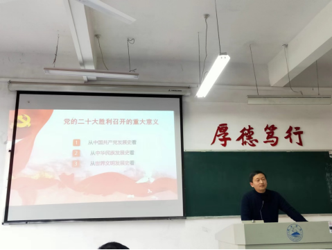 为深入学习宣传贯彻党的二十大精神,切实把思想和行动统一到党的二十大精神上来,3月15日下午,beat365会员官方网站教工第三党支部在香远楼216开展了“学习贯彻党的二十大精神”主题党课。支部书记姚中平作为主讲人以“一心向党,筑梦青春”为主题,引导全体党员更好地学习理解党的二十大精神。