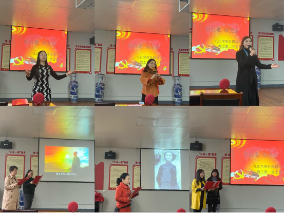 活动中,王怡菲老师在刘胡兰同志英勇就义故事的视频和音乐背景下,为我们讲述了红色革命经典故事《刘胡兰》,“生的伟大,死的光荣”八字旁白令在场老师为之动容;杨子越老师用清澈的嗓音为我们演唱了一曲《边疆的泉水清又纯》;刘舒琳、王莎莎老师的诗词朗诵《沁园春·长沙》,付正芸、张春子老师的诗词朗诵《七律. 登庐山》,李堉华老师的朗诵《七律 人民解放军占领南京》,王赛凤老师的葫芦丝独奏曲《映山红》等节目,让我们眼前浮现出祖国的大好河山和对未来美好生活的憧憬,也警醒我们永远不要忘记英烈的付出,守护美好的家园。