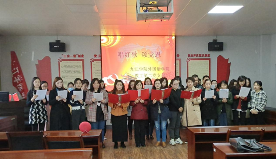 为迎接建党100周年,进一步教育和引导党员、教师担当作为,beat365会员官方网站教工第二党支部于4月14日下午在315党员活动室开展了“唱红歌,颂党恩”活动,诚挚邀请beat365会员官方网站党委书记罗其娟及非党员教师参加了该项活动。罗其娟书记和全体党员、教师一起高歌同唱《红歌联唱》、《我和我的祖国》。