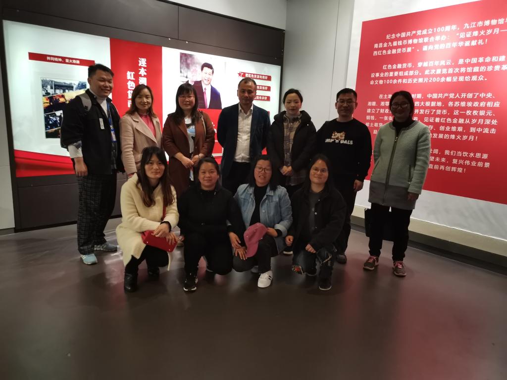 教师党员一行还参观了九江市博物馆红色苏区货币金融货币展,在展览大厅中院党委副书记彭晓带领全体教师党员重温入党誓词,让党员教师们重温了入党宣誓时的庄严承诺和坚定决心。